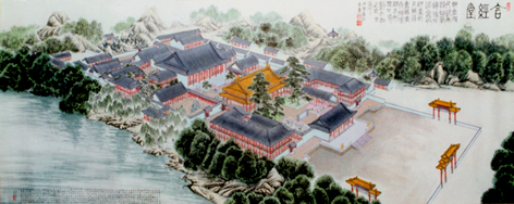 Tripataka Hall Landscape Drawing by Zhang Baocheng