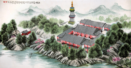 Fahui Temple Landscape Drawing by Zhang Baocheng