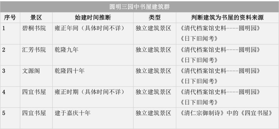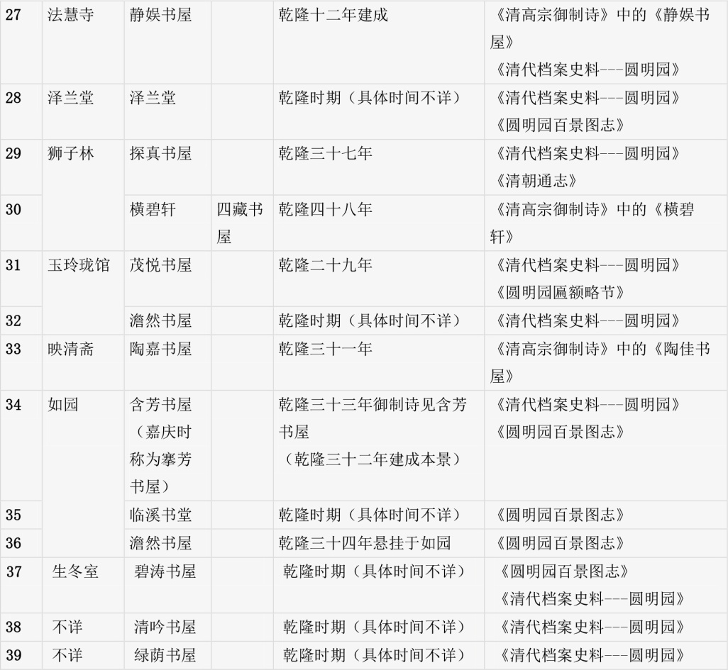 通过资料整理可得出,圆明三园中存在过六十处书屋,雍正时期有八处,乾隆时期增设三十九处,嘉庆、道光、咸丰时期增设的书屋分别是五处、三处和四处。[7]