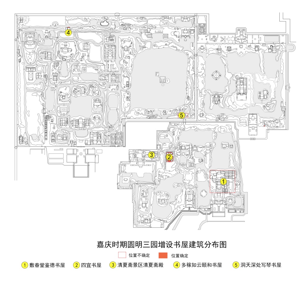 图4嘉庆时期圆明三园增设书屋建筑分布图