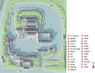 道路层面,对重点展示区域进行重新规划,充分利用剩余空间,增设山地穿越型道路与小型观景休憩平台,同时参考乾隆二十一年穿戴档中的活动路线进行设计,形成内外多层的游览路线。可以加入游船等水上项目,增强其趣味性与可玩性(图24)。建立完整的遗址导视系统与单景信息阐释系统,方便游客进行直观体验与学习。