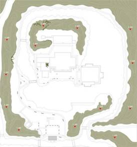图5 濂溪乐处乾隆后期土山与石山空间图(来源:作者根据叶扬、刘畅的底图改绘[[6]])