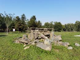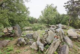 濂溪乐处景区遗址中山石空间主要分为土山空间与石山空间。土山空间相较于乾隆后期的布局,整体地形高度下降了3-4m,现状的土山最高峰集中在东南部与西部地区,高度仅为3.5m;中心岛北部的土山空间最高峰为2.5m,现场已变成较为平坦的土坡,游客可以轻松翻越进行穿越游览(图11)。
