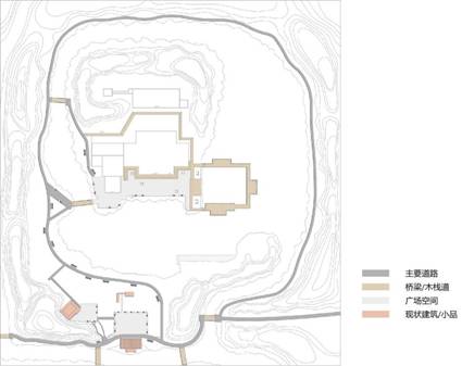 第四,对园路桥涵进行恢复与整修,不失其历史风貌,部分道路可以按照游览功能需求进行调整;