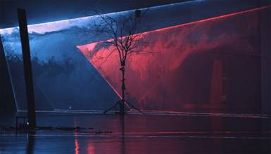 濂溪乐处的建筑道路空间占据着较大面积,也是整个景区游览的核心区域,所以为后期设计规划的重点。建筑层面,可以利用数字化景观装置与立体展示装置对建筑进行空间与功能的解读,并进行白天和黑夜不同时期的空间氛围模拟(图22)。