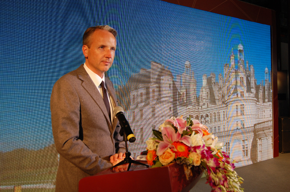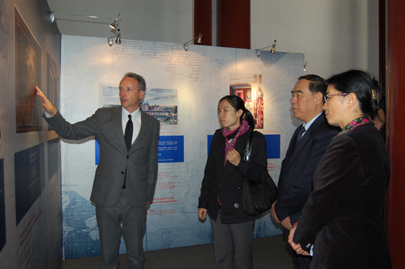 10月13日上午,法国驻华使馆文化教育参赞周子牧、法国驻华使馆文化专员黎颖、巴黎香波堡管理处主任约翰·杜若伟、香波堡管理处公关部主任赛斯丽﹒蒙克、香波堡管理处商务部主任艾米丽﹒罗伯特、香波堡管理处保护与研究部主任维吉尼﹒贝达尔一行50余人来到圆明园遗址公园,在海淀区委书记隋振江、文化部外联局党委书记蒲通、海淀区人民对外友好协会会长周来升、海淀区副区长陈双、圆明园管理处主任曹宇明的陪同下进行了参观考察。