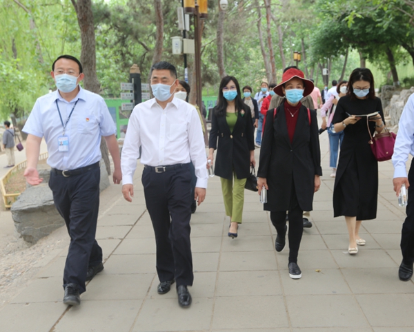 5月21日上午,海淀区政协副主席丁志明到圆明园遗址公园实地调研疫情防控及复工复产情况,并召开区政协提案办理协商座谈会。政协委员郑丹、胡永芳等参加调研,圆明园管理处主任李博、副主任李向阳陪同调研。