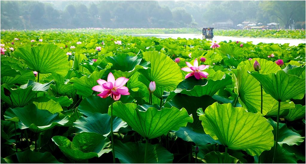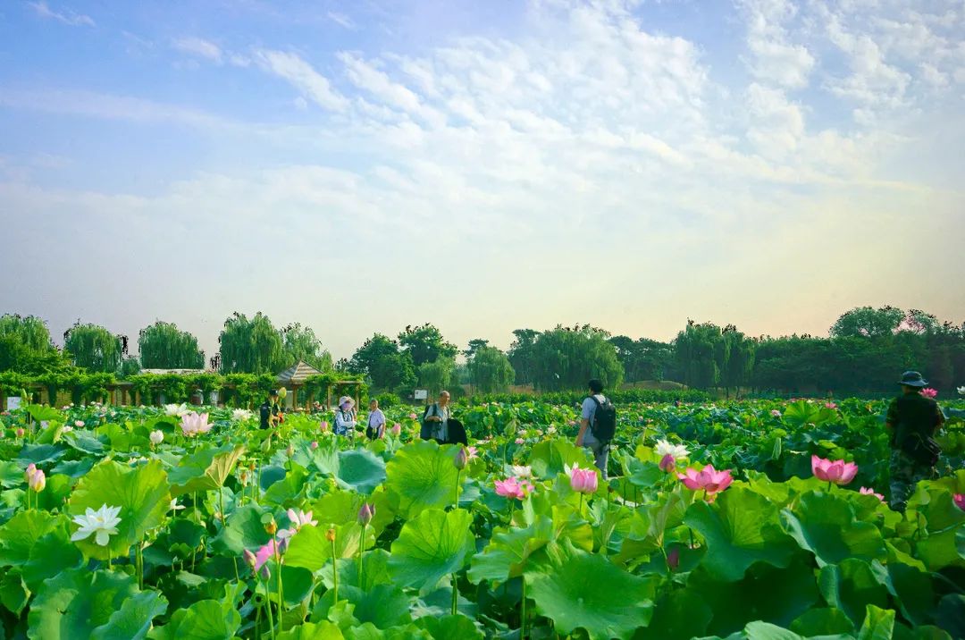 为方便游客赏荷,园内专门开辟了水上观荷路线,游客可在长春园海岳开襟码头乘船,近距离观赏荷花美景,体验“莲叶何田田”的美妙意境。