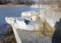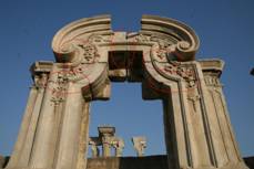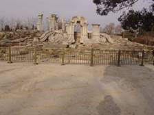 大水法遗址设置的护栏 方壶胜境遗址露天存放的文物