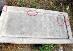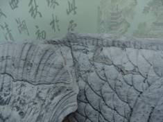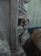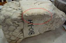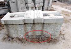 (7)水泥等不当的修补:对石质文物采用水泥等不当的方式进行粘结、加固、修补,既改变文物原貌,又有可能引起二次污染和深层次的破坏。水泥能释放出水溶性盐,主要是碳酸钠、碳酸钾及一些硫酸盐对石质文物有破坏作用。