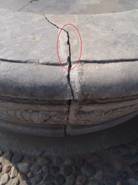 狮子林虹桥的裂隙和局部脱落 含经堂抱鼓石的裂隙