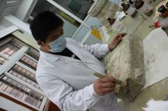 石质文物风化既有石质本身的组成、性质、保存状况等内部因素的影响,又有外界物理、化学、生物等因素的影响。对石质文物本体分析取样是提出治理对策的重要理论依据。圆明园石质文物所采用的石材基本为汉白玉和青石。