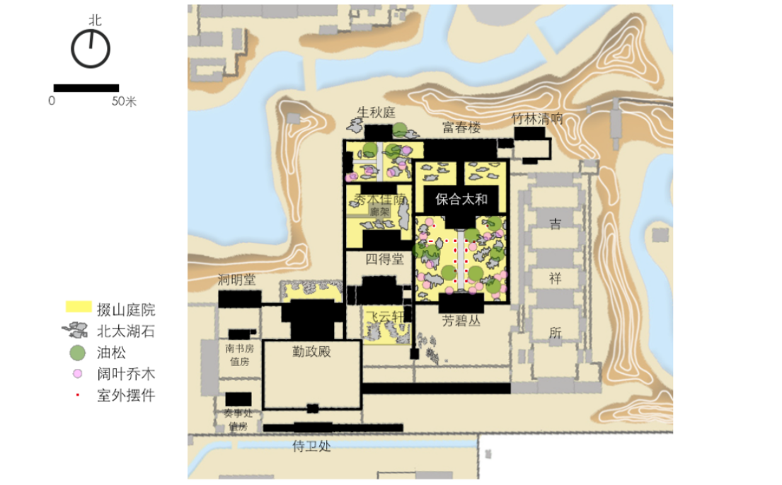 图4 勤政亲贤景区复原平面图(咸丰时期)