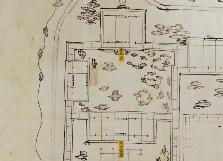 图3 正大光明殿旁的土山、绿地与植物搭配(道光时期)