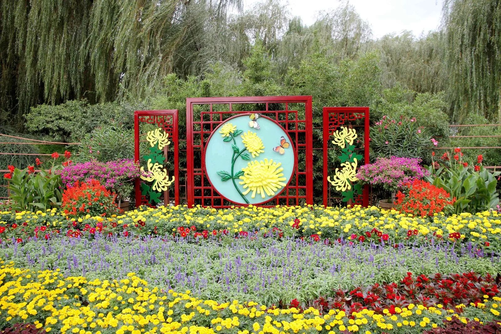 秋高气爽,赏花是金秋游的传统活动。菊是花中四君子之一,淡而有味,雅而有致。中国人自古以来就喜爱菊花,文人骚客争相咏诵菊花的美丽和品格,布衣百姓同样养菊、赏菊、爱菊。从宋代起民间就有一年一度的菊花盛会,圆明园每年金秋佳节必会举办意境别致的菊花展。2017年精品菊展结合高品质的菊花与传统秋令文化,在涵秋馆设置主展区,姹紫嫣红的什锦菊、花团锦簇的球菊、形态各异的标本菊以及各色的鲜花组成了美轮美奂的造型花坛;同时,正觉寺、天心水面、濂溪乐处等地布置以菊花为主花材的园林小品,包括宫廷团扇、仿古建筑、黑天鹅等主题元素,营造出具有皇家特色、蕴含中国传统文化而又清新怡人的园林景观。此外,园内的迎晖门、三孔桥、涵秋馆等地都被鲜花装点得色彩缤纷,鸿慈永祜、汇芳书院、山高水长、洞天深处等多个景区种植了波斯菊、 金鸡菊、黑心菊、百日草、千日紫等鲜花,营造了一片五彩缤纷的西部花海。