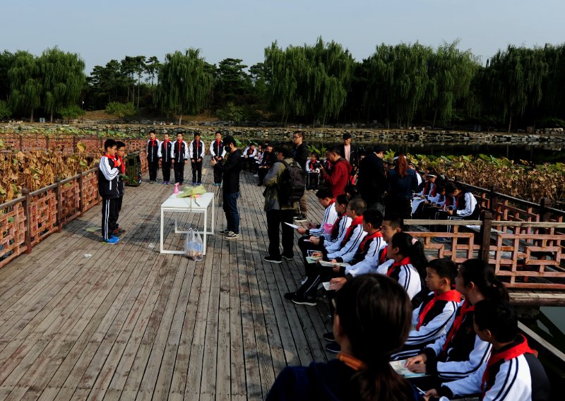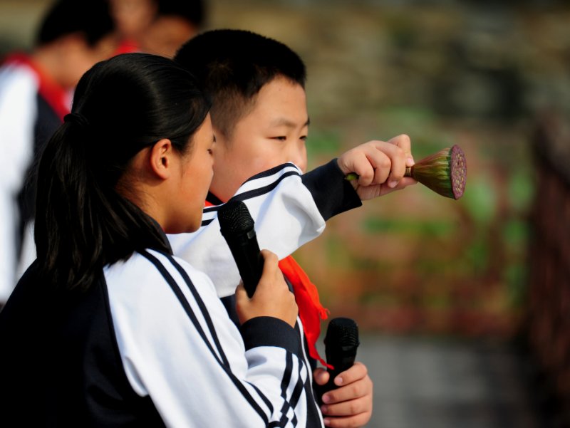 10月16日下午,圆明园管理处邀请北京市育英中学初一(5)班在圆明园濂溪乐处举办了一场别开生面的现场教学纪念活动。现场教学以周敦颐的名篇《爱莲说》为授课内容,从生物、音乐、美术、药食、文学、表演等多方面对莲文化进行了阐释,在同学们整齐洪亮的《爱莲说》诵读声中结束。