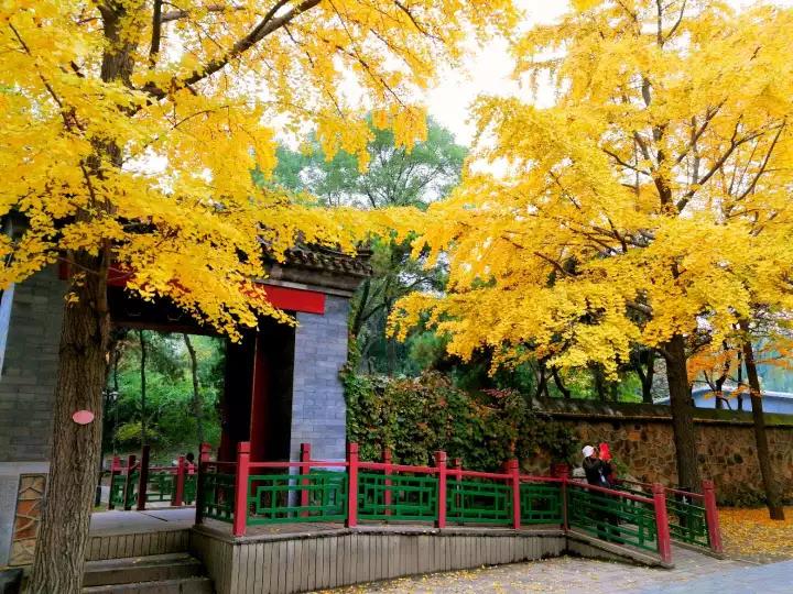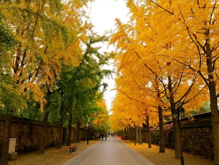 银杏叶漫天飞舞,落在瓦上、路上、椅子上,目之所及一片金黄,让人不由得想起范仲淹的“碧云天,黄叶地,秋色连波,波上寒烟翠”。