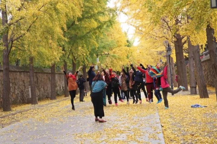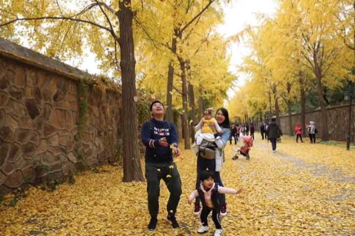 银杏叶将黄未黄时,银杏大道已迎来大量游客:有牵手前来散步的情侣、夫妻,有前来秋游的一家人,更多的则是组团来此拍摄秋景的摄影爱好者们。