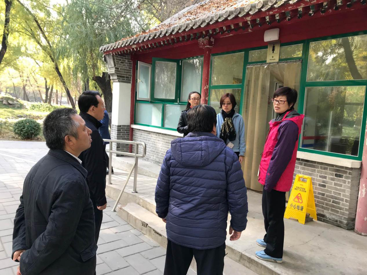 为贯彻落实十九大精神,深刻认识重大意义,准确把握核心要义,10月31日上午9时,圆明园管理处主任李博、副主任马晓林、副主任张杰雄、副主任杨海芳一行深入一线,对全园卫生间进行实地调研加强工作指导。李博主任向园内各处卫生间负责人详细询问了解当前存在的问题和状况,并对卫生间内基础设施、厕位和无障碍通道等设施进行全面检查,提出了相应整改意见和建议。在相关科室的支持和配合下,争取早日完成园内所有公共卫生间星级化整改达标工作。