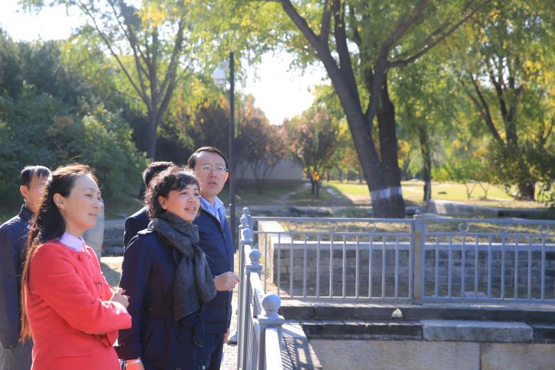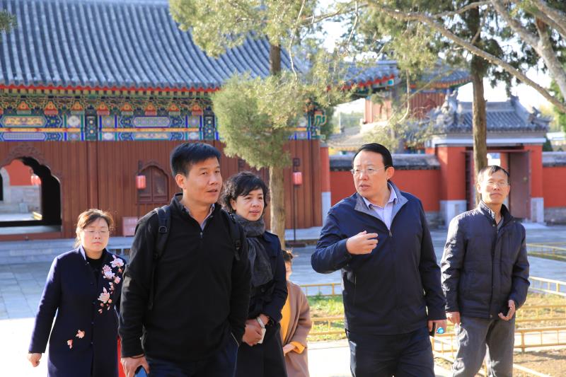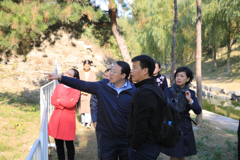 万琳院长一行人先后到正觉寺、九州景区、大宫门、紫碧山房、舍卫城、福海、展览馆实地考察学习我园在遗址博物馆建设与运营、大遗址保护与展示、公众考古、爱国教育等工作方面的先进经验做法。双方就遗址博物院建设与经营,中国考古遗址公园联盟大遗址保护的发展道路,国家考古遗址公园的创新成果,建设东方大遗址保护和发展的联动平台等进行了深入交流。