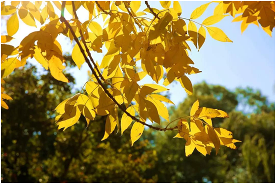 除了银杏外,圆明园内还有白蜡、元宝枫、黄栌等观赏性较强的彩叶树种。白蜡在绮春园、福海景区均有分布;元宝枫主要分布在长春园狮子林、德胜概附近,以及圆明园廓然大公、九州清晏景区;黄栌主要分布在长春园的玉玲珑馆周边。