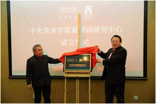 2019年1月17日上午,“中央美术学院——圆明园研究中心”成立揭牌仪式在中央美术学院建筑学院举行。这是圆明园继与北京交通大学、天津大学、北京外国语大学、中国农业大学合作成立圆明园研究院之后的第五个研究机构,也是首次与艺术院校合作成立研究中心。双方将发挥中央美院学科特色,围绕圆明园遗址的研究、保护、展示、管理、文创开发、数字影像等方面开展合作。