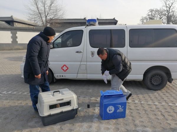 次日,北京市野生动物救护中心工作人员来到管理处将夜鹭接走,并对管理处的及时救助、细心呵护致以感谢。