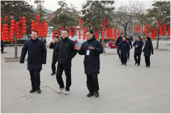 张劲林一行园内对主游览线路的景观布置、游览安保等进行了检查,主要包括节庆景观和皇家特色文化活动的安排、安全制度和保障措施的执行落实、经营服务有序运行等情况。