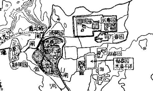 明确了水磨村的位置后,应该可以断定“水磨闸”的位置。因为“旧名水磨村”是以“水磨”而闻名,而由水磨村和水磨闸可以确定胤祉建房选址在圆明园东南方向。 2、四阿哥胤禛等四位皇子建房所在的探讨 以上我们确定了胤祉的园子所在,又由于胤祉特意强调“看此地方,距四阿哥建房一带近”;同时又有“故四阿哥、八阿哥、九阿哥、十阿哥具奏皇父,在此地修建房屋”一句。由此可知,四位阿哥的房是建在一处,若知道其中一位的所在便可知其它。 据张宝章的《圆明园始建年代的探讨》中所说:“位于畅春园北墙外、挂甲屯村东的允禟赐园彩霞园,即后来的蔚秀园所在地。”对此康熙五十二年扬州盐商程庭的《停骖随笔》“苑后则诸王池馆,花径相通”[20]可为佐证。另外,“一废太子前,皇四子胤禛、皇八子允禩、皇九子允禟三人十分要好,无论京城府邸或京郊别墅,无不毗邻而建”。(摘自杨珍《反太子派成员综述》)再有,允禩以府邸与允禟的府邸的“花墙只隔一墙”[21]指的更像是京郊别墅,而非在北新年桥至柏林寺一带的府邸。总之,几位皇子不论是京城府邸还是京郊别墅都毗邻而建。所以,如果能够确定胤禟的彩霞园在畅春园北墙外,那么,也就确定了四阿哥胤禛等几位皇子所建之房也在畅春园北墙外,而不在圆明园的位置上。 由此引发的另一个问题,如果四阿哥胤禛所建之房是圆明园的前身,那么,后来的雍正的圆明园势必要扩建而挤占几位兄弟的园子。雍邸升为雍和宫便是把廉亲王的府邸请走的。可是,至今我们还没有看到圆明园因扩建而挤占哪位王爷的花园的记载。 3、从建房占地面积的“窄小”和所需时间的短暂来说明胤禛等七位皇子所建之房均不是圆明园 首先,从建园所需时间上看:从四十六年正月十八日“奏请于畅春园附近建房”至康熙四十六年十一月“恭请上幸王(花)园,进宴”仅用了十一个月的时间。这中间包括选址、设计、备置物料、施工营造、内外装修,其中胤祉仅选址就用去了三个月。可见用于建房的时间之仓促,由此也反映出其等级之低、规模之小。而圆明园则不同,不论是从现有的山形水系,还是从以往的图说记载来看,它恢宏的气势与浑然一体的布局都说明了它在设计之初便是一个规模庞大、历时很长的帝王御苑工程。所以,几位阿哥于仓促匆忙间建造的房屋不可能是圆明园的前身。因此,笔者认为胤禛“恭请上幸花园,进宴”的“花园”与康熙五十六年皇太后去逝后康熙去过的圆明园不是一个园。 其次,从建房占地面积来看:假如康熙将圆明园所在地“赏与尔等建房”的话,那么我们知道仅圆明三园中的圆明园即占地200多公顷,合3000多亩地,就算每个皇子建园用地300亩,也够十几个儿子用的了,怎么能说“若建七人房屋,地方似觉窄狭”呢?可事实是康熙“赏与尔等建房”之地的确非常小,以至于挤不下七位阿哥,无奈其中三位阿哥只好另找地方建房。在这样小的地方建起的房子其地位和规模怎么能和圆明园相比? 综上所述,从史料的考证上来看,胤禛等七兄弟的建房选址不在圆明园的位置上;从历史背景上看,四阿哥胤禛又不具备拥有圆明园的条件。因为,在畅春园的正北,一个坐北朝南的,其规模比畅春园还要宏敞,其气势大有君临天下之意的圆明园乃为帝王所有,而且,这规模是在康熙时形成的。如此规模的圆明园不可能为四阿哥胤禛所建,而如果不是胤禛所建,那么它又可能是为谁而建? 在以上胤祉的奏折中我们还注意到,不论是在正月十八日的奏折,还是在三月二十日的奏折中均提到一个不为后人所知的“新(建)花园”。而康熙赏给七个皇子建房的空地是在“(畅春园)北面‘新建花园’以东”。也就是说建房“空地”以西、畅春园以北已经有一个“新(建)花园”。 以往我们在引证这段史料时更多地只是注意到胤禛在这一年建了房或花园,而忽略了“新(建)花园”者为何。可是,它毕竟是一个极为重要的客观存在。它不仅是七位皇子建房选址的坐标,而且,从所在方位上看,它很可能就是后来的圆明园。 1、“新建花园”的所在方位应是圆明园的所在 从所处的位置上看,奏折中说“北新花园迤东空地”所表达的方位是畅春园的正北。据《日下旧闻考》:“圆明园在畅春园之北”,“距畅春园里许”。而畅春园“因在圆明园之南,亦名前园云”。由此可见,这个“新建花园”正处在圆明园的所在方位。 为考证严密起见,我们不妨假设“新建花园”在圆明园和畅春园之间。可是据乾隆年间的《日下旧闻考》而言“(圆明园)大宫门前辇道东西皆有湖,是为前湖。乾隆二十八年御制前湖诗:御园之前本无湖,而今疏浚胡称乎?石衢之右地下湿,迩年遭潦水占诸。衢左亦不大高衍,往来车马愁泥涂。因卑为泽事惟半,取右益左功倍俱。……役成春水有所受,路东泞去诚坦途。”由此可知在两园之间石衢辇道左右不大可能再有大型园林。也就是说如果新建花园在畅春园北面,那么它就应该是圆明园。 在畅春园的东北面还有一座索额图的花园,而假如“新建花园”指的是它的话,那么胤禛等四位皇子所建之房因在它们之东就更不可能是圆明园了。另外,索额图的园子同明珠的园子一样都是于畅春园稍晚的时候建成的,故称不上是“新花园”。 此外,假如四阿哥胤禛等诸位皇子就是在圆明园的位置建的房子或花园,那么,在圆明园的西边应当
